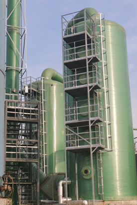 玻璃鋼洗滌塔:  玻璃鋼洗滌塔利用廢氣與液體的接觸,液體吸附污染物,再將清潔氣體與被污染的液體分離,達到凈化的目的。 簡易工作原理廢氣由填充式洗滌塔底部進入,采用氣液逆向吸收方式,即帶洗滌液水自塔頂向下以霧狀或小液滴向下噴灑,通過多重氣、液接觸、相溶,將氣體里面的污染物分離出來...